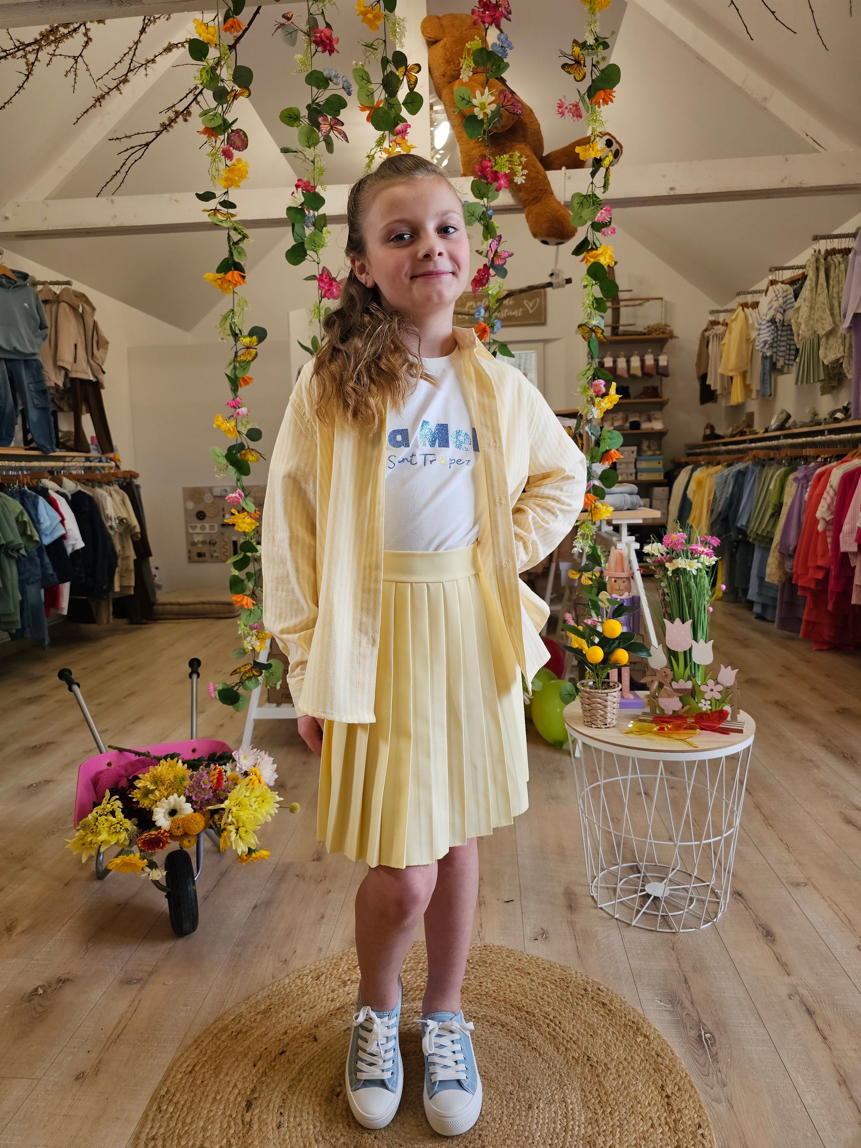 Cette jupe plissée pour enfant séduit par son tombé fluide et sa coupe intemporelle. Les plis réguliers apportent du mouvement et une allure élégante, tandis que la taille élastiquée assure un maintien confortable et un enfilage facile. Idéale au quotidien comme pour les occasions spéciales, elle se porte aussi bien avec un t-shirt qu’un haut plus habillé.